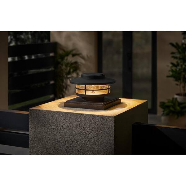 Marion 25-Watt Equivalent Black Low Voltage LED Outdoor Post Cap Light with Seeded Glass
