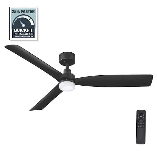 Marlston 52 in. Indoor/Outdoor Matte Black with Black Blades Ceiling Fan with Adjustable White LED with Remote Included