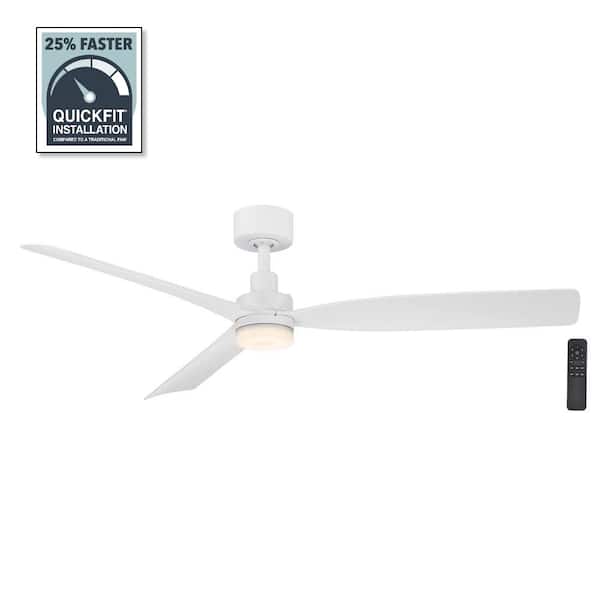 Marlston 52 in. Indoor/Outdoor Matte White with White Blades Ceiling Fan with Adjustable White LED with Remote Included
