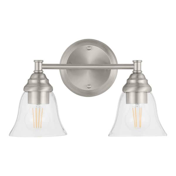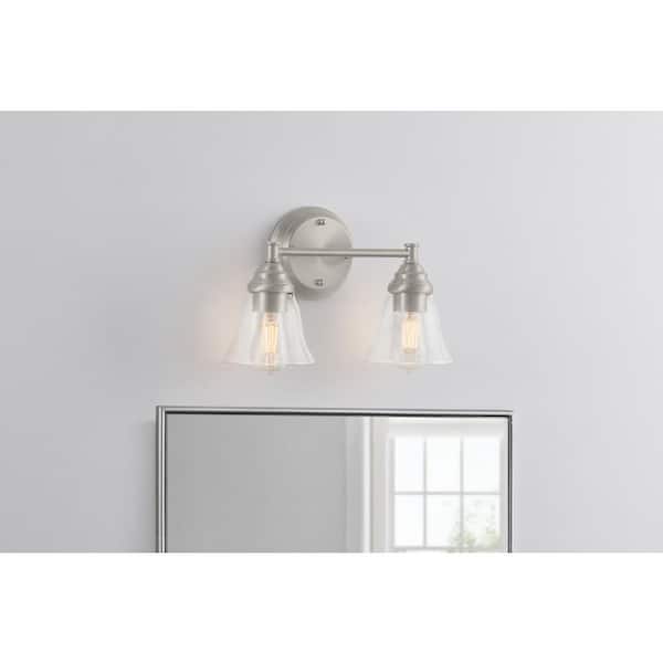 Marsden 14.25 in. 2-Light Brushed Nickel Transitional Vanity Light with Clear Glass Shades