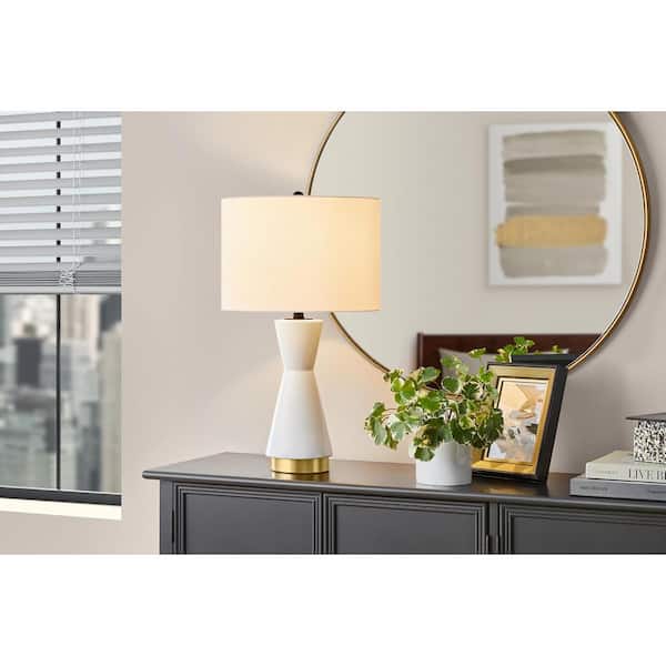 Melbourne 24 in. White with Gold Accents Ceramic Table Lamp