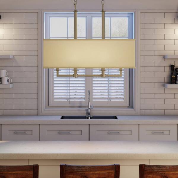 Menlo Park 6-Light Brushed Nickel Kitchen Island Chandelier with Cream Fabric Shades
