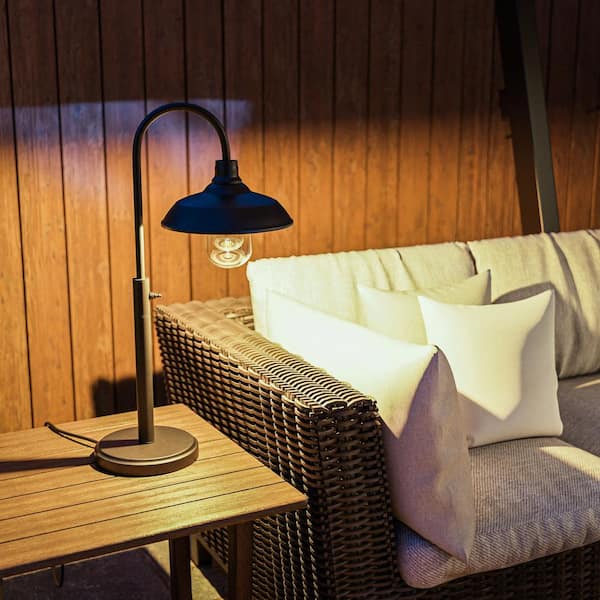 • Rustic farmhouse outdoor table accent lamp with barn shade