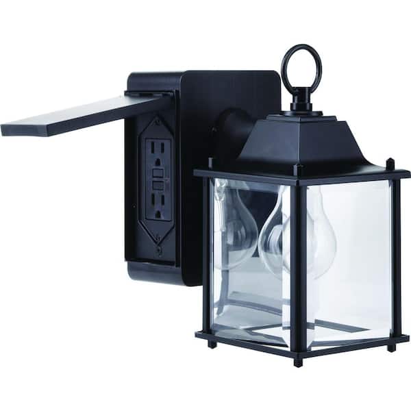 Mission Style 1-Light Outdoor Black Wall Lantern with Built-in GFCI
