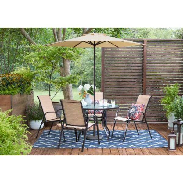 Mix and Match Brown Stackable Sling Outdoor Dining Chair in Cafe (2-Pack)