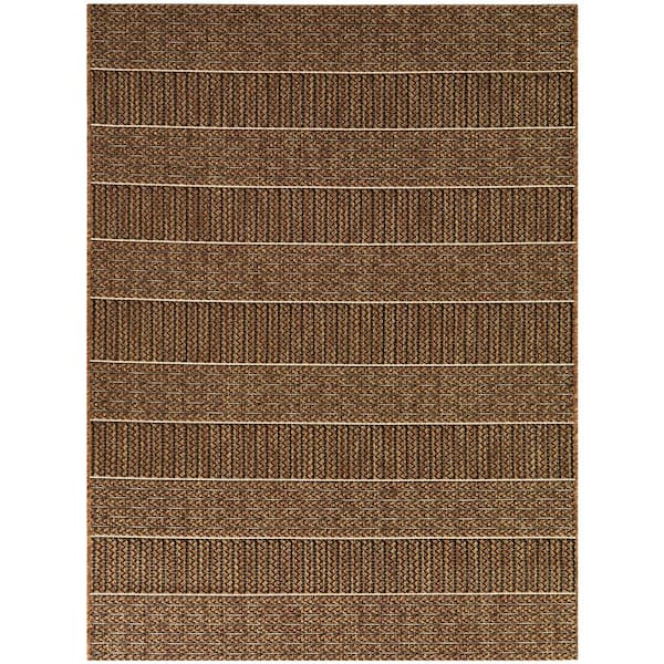 Natural Stripes Brown 9 ft. x 12 ft. Striped Indoor/Outdoor Area Rug