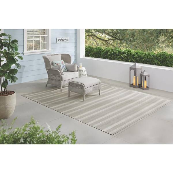 Neutral 8 x 10 Striped Indoor/Outdoor Area Rug