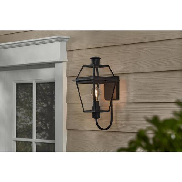 Newberry 17.75 in. Matte Black Finish Hardwired Outdoor Wall Lantern Sconce with Clear Glass
