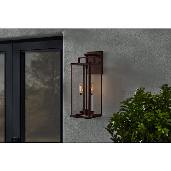 Oak Bluff 17 in. Dark Olde Bronze Hardwired Outdoor Wall Lantern Sconce with No Bulbs Included