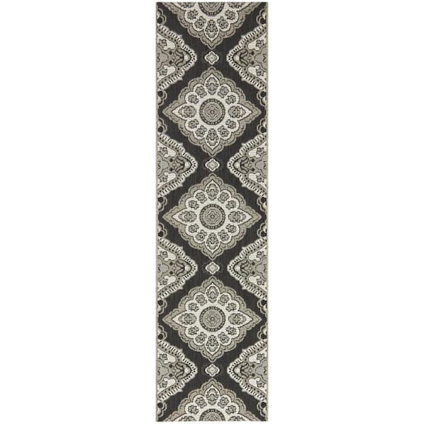Oak Hill Black Runner 2 ft. x 7 ft. Medallion Indoor/Outdoor Area Rug