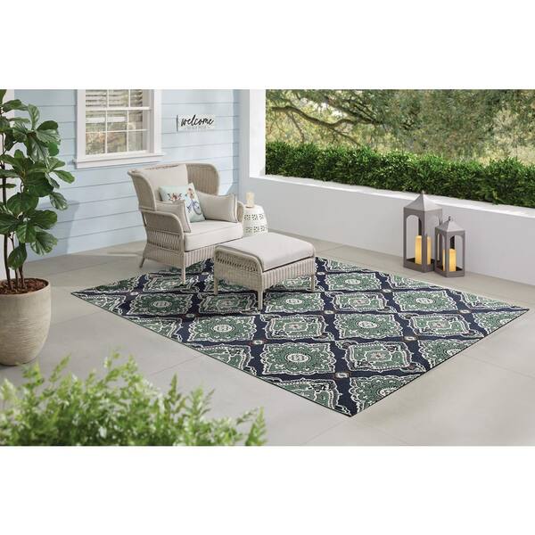 Oak Hill Blue 7 ft. x 9 ft. Medallion Indoor/Outdoor Area Rug