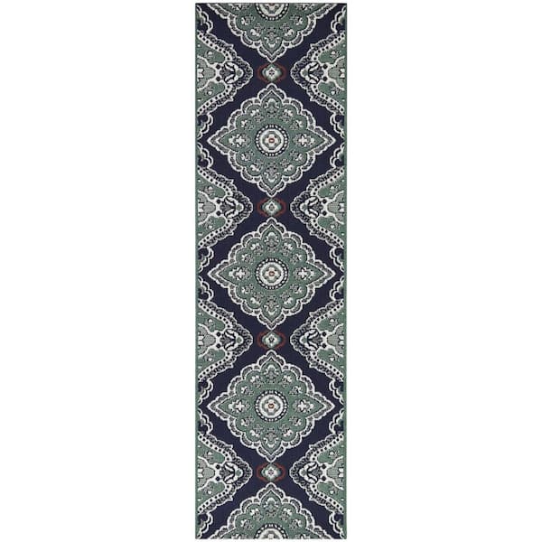 Oak Hill Blue Runner 2 ft. x 7 ft. Medallion Indoor/Outdoor Area Rug