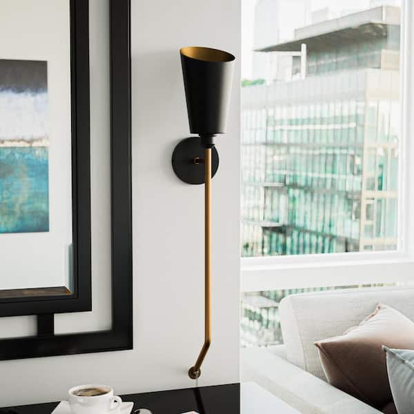 Park Haven 32 in. 1-Light Black and Gold Wall Sconce Wallchiere