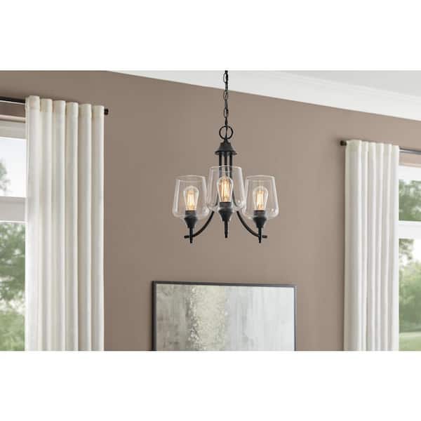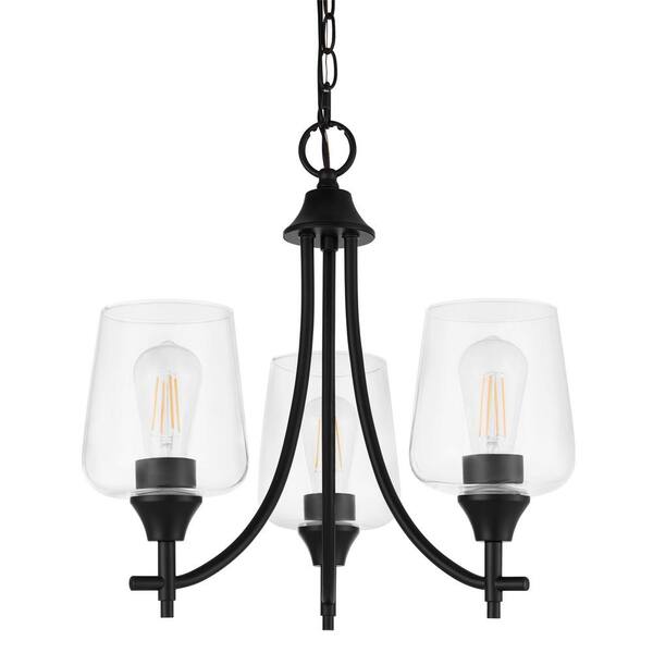 Pavlen 18 in. 3-Light Black Chandelier with Clear Glass Shades