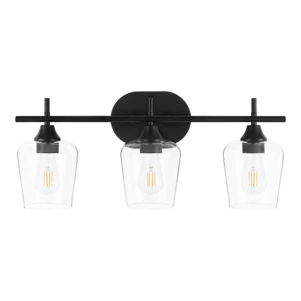 Pavlen 24 in. 3-Lights Black Vanity Light with Clear Glass Shade