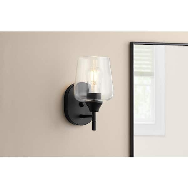 Pavlen 5.5 in. 1-Lights Black Sconce with Clear Glass Shade
