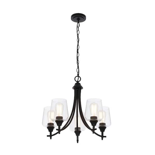 Pavlen 5-Light 23 in. Rustic Bronze Hanging Candlestick Chandelier with Clear Glass Shades for Dining Room