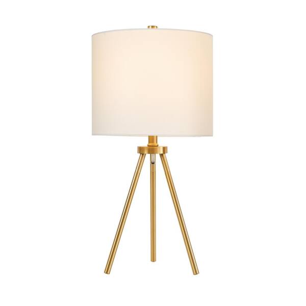 Quinby 22 in. Gold Tripod Table Lamp with White Fabric Shade - Title 20