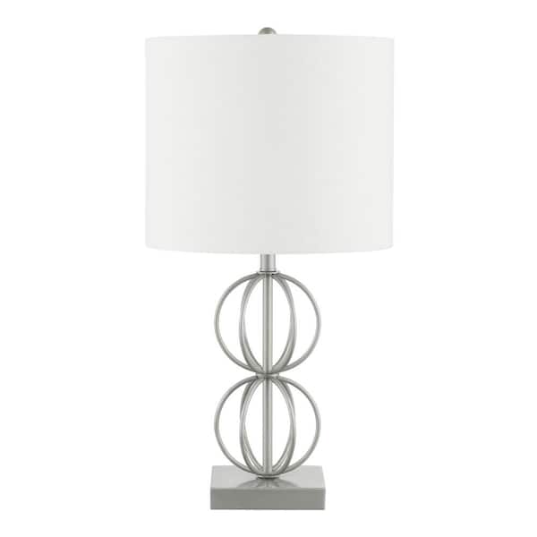 Railford 23 in. 1-Light Pewter Indoor Geometric Metal Table Lamp with Fabric Lamp Shade