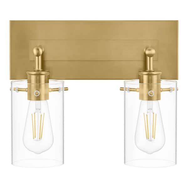 Regan 12.75 in. 2-Light Brushed Gold Vanity Light with Clear Glass Shades