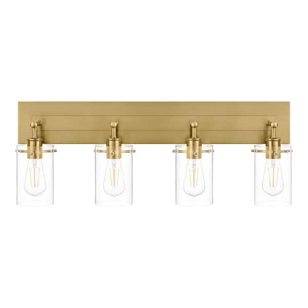 Regan 29 in. 4-Light Brushed Gold Vanity Light with Clear Glass Shades