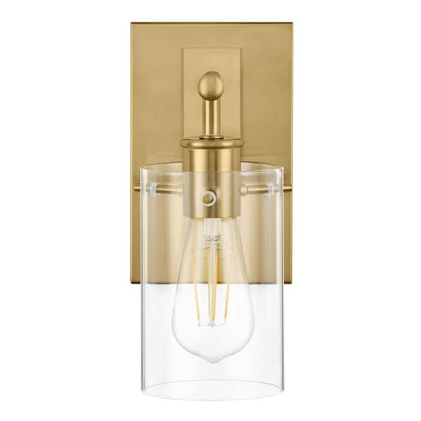 Regan 4.5 in. 1-Light Brushed Gold Vanity Light with Clear Glass Shade