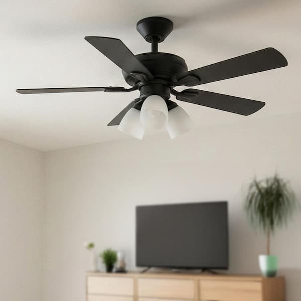 Riley 44 in. Indoor LED Matte Black Downrod Ceiling Fan with 5 Reversible Blades, Light Kit and Remote Control Included