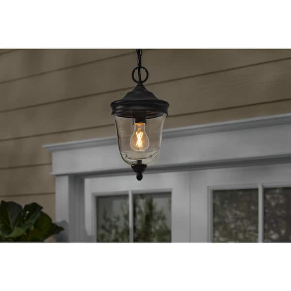 Russo 13.75 in. 1-Light Matte Black Dimmable Outdoor Hanging Light Pendant Light with Clear Glass and No Bulb Included