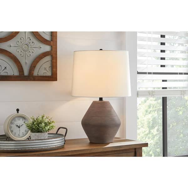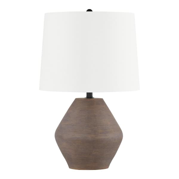 Saye 23.5 in. Brown Ceramic Table Lamp with White Fabric Shade