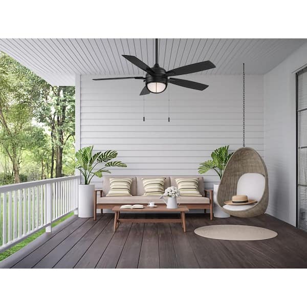 Seaport II 52 in. Indoor/Outdoor Wet Rated Matte Black Ceiling Fan with LED Bulbs Included