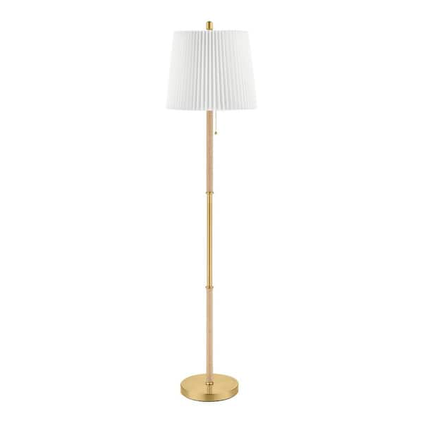 Selatir 60 in. Steel Aged Brass Standard Indoor Floor Lamp with White Fabric Shade