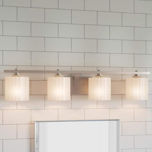 Sheldon 4-Light Brushed Nickel Vanity Light with Frosted Glass Shades
