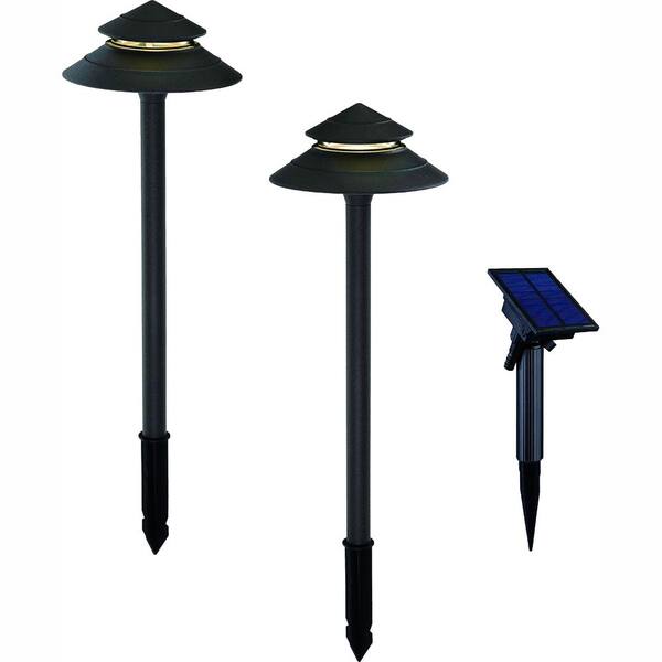 Solar Bronze Outdoor Integrated LED 2 Tier Landscape Path Light with Remote Solar Panel (2-Pack)
