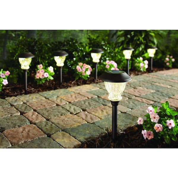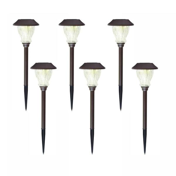 Solar Bronze Outdoor Integrated LED 3000K 10-Lumens Landscape Path Light with Crackle Glass (6-Pack)