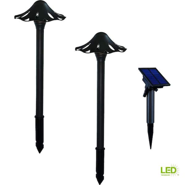 Solar Oil Rubbed Bronze Outdoor Integrated LED Mushroom Landscape Path Light with Remote Solar Panel (2-Pack)