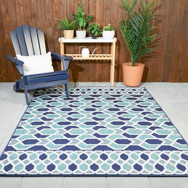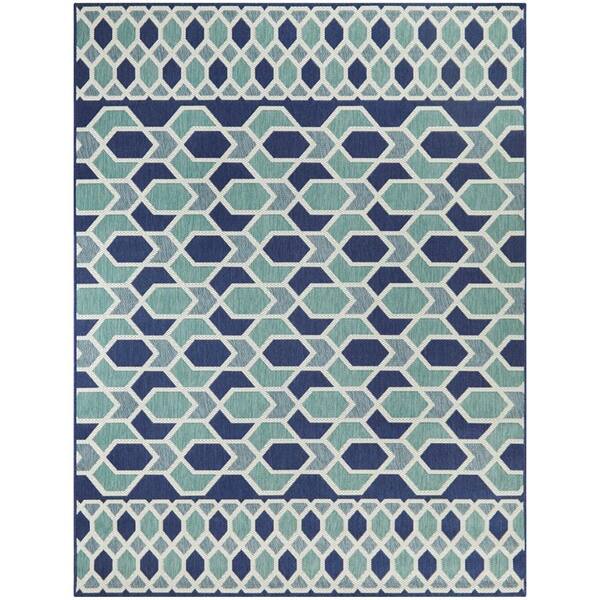 Star Links Navy/Teal 9 ft. 2 in. x 12 ft. Geometric Indoor/Outdoor Area Rug