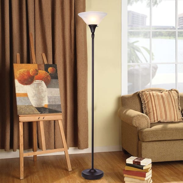 T20 72 in. Bronze Torchiere Floor Lamp with Frosted Glass Shade