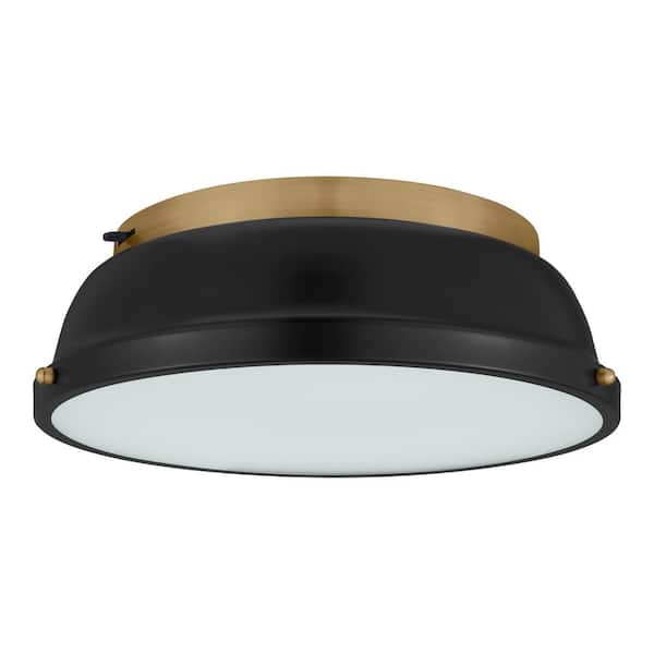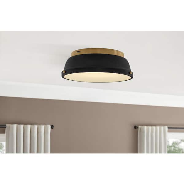 Taspen 14 in. Black and Antique Brass CCT Color Temperature Selectable LED Flush Mount Ceiling Light Fixture