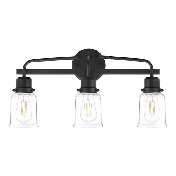 Timphaven 22-1/8 in. W 3-Light Vanity Light Matte Black Clear Glass