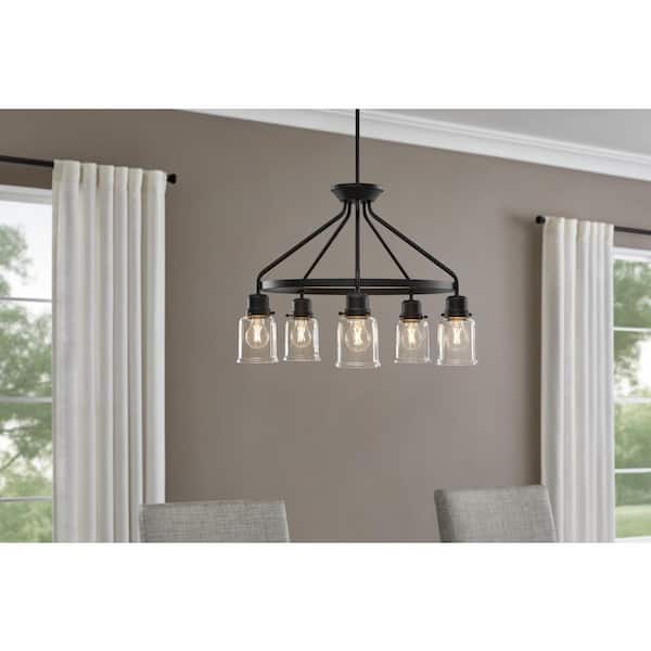 Timphaven 5-Light Matte Black Clear Glass Chandelier
