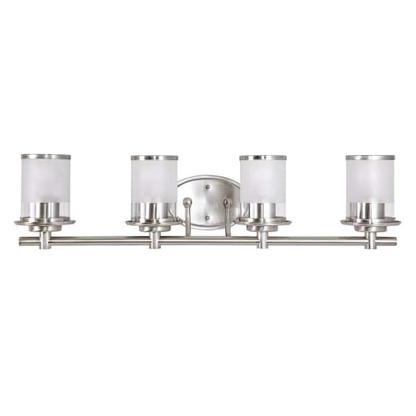 Truitt 32.1 in. 4-Light Brushed Nickel Modern Transitional Vanity with Frosted and Clear Edge Glass Shades