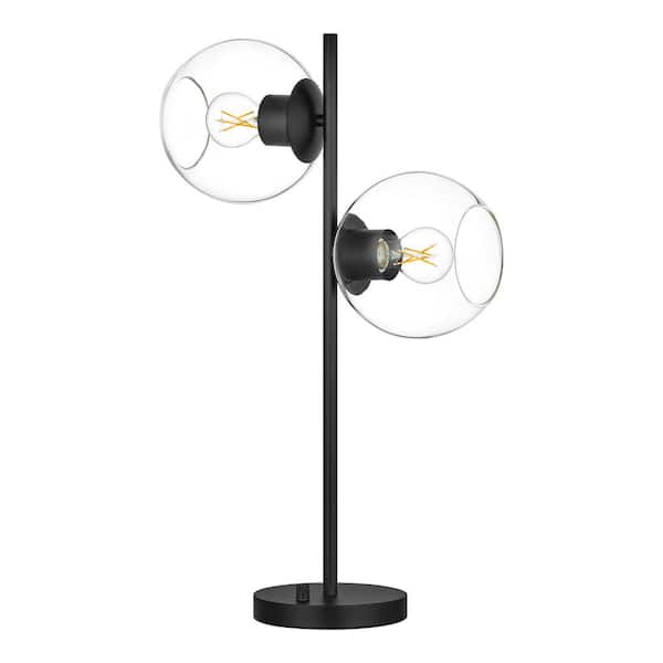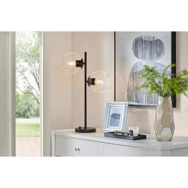 Vista Heights 24. 5in. 2 Light Matte Black Indoor Table Lamp With Clear Glass Shade