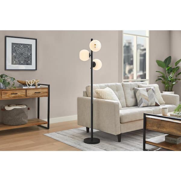 Vista Heights 62 in. 3 Light Matte Black Standard Indoor Floor Lamp Opal White Glass Shade