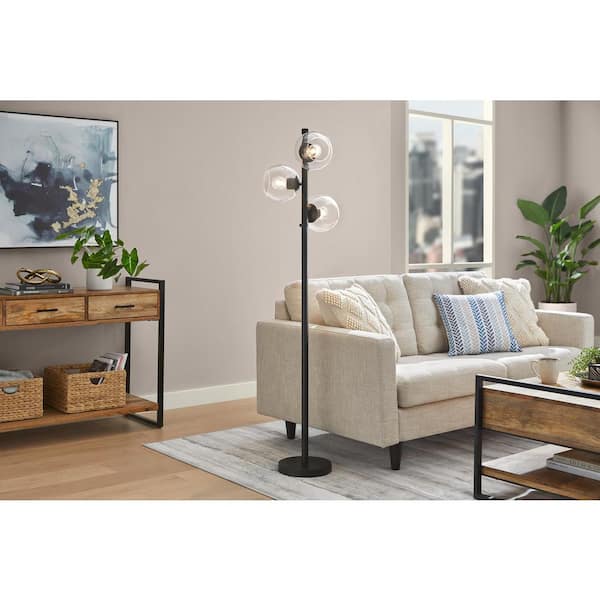 Vista Heights 62 in. 3 Light Matte black Standard Indoor Floor Lamp With Clear Glass Shade
