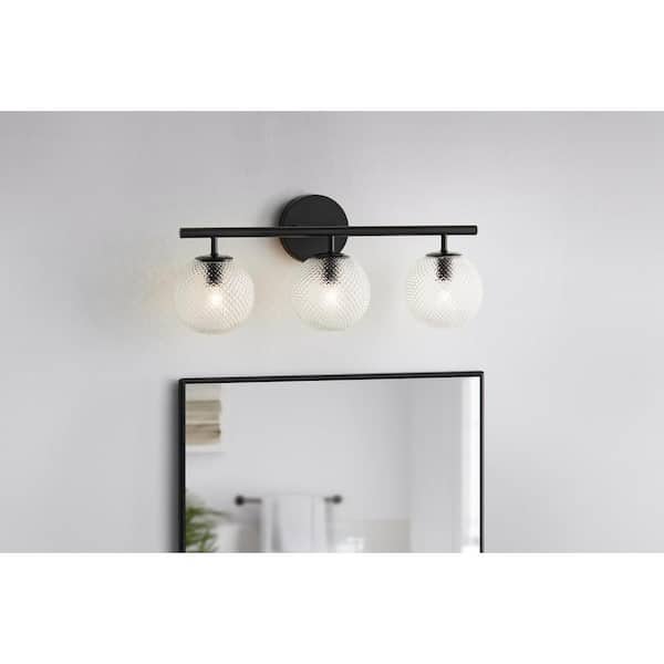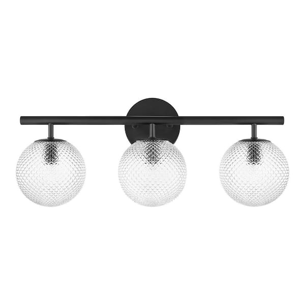 Walsh 22 in. 3-Light Black Vanity Light with Prismatic Glass Shades