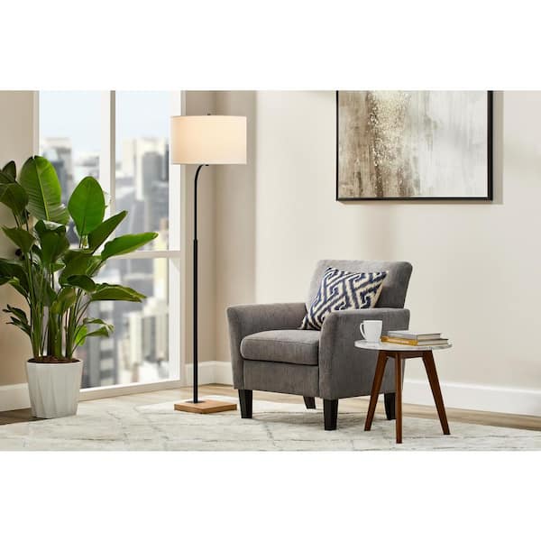 Warlington 64 in. Black and Wood Grain Floor Lamp