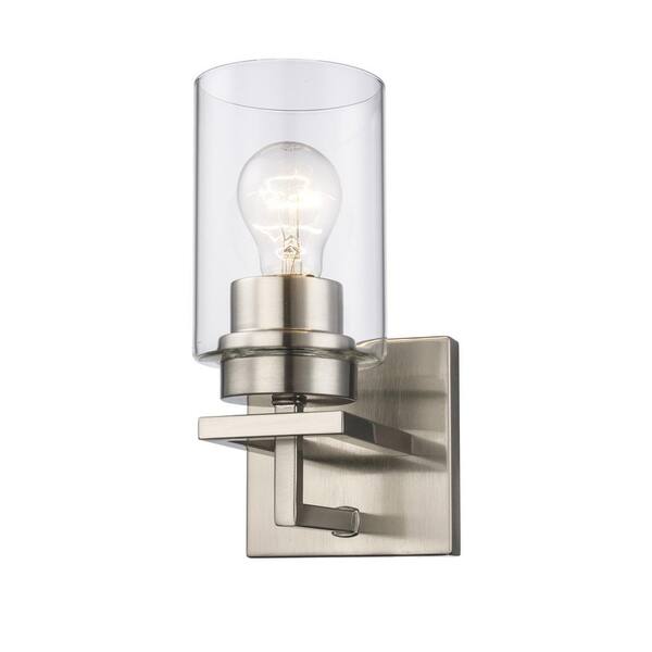 Westerling 1-Light Brushed Nickel Indoor Wall Sconce Light Fixture with Clear Glass Shade