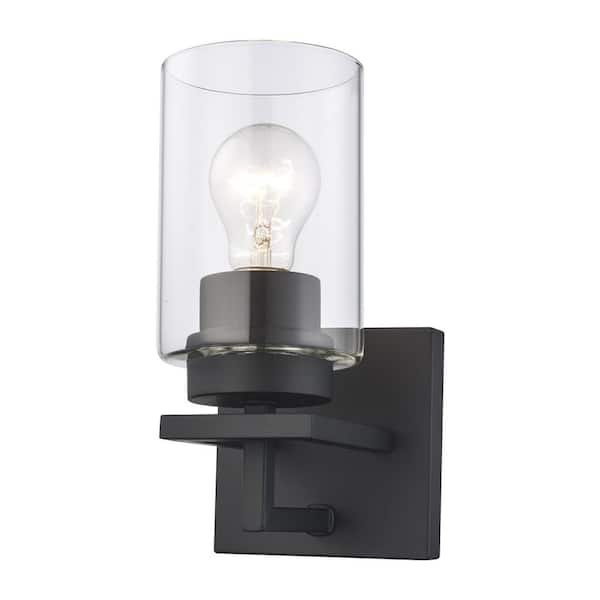 Westerling 1-Light Matte Black Indoor Wall Sconce Light Fixture with Clear Glass Shade