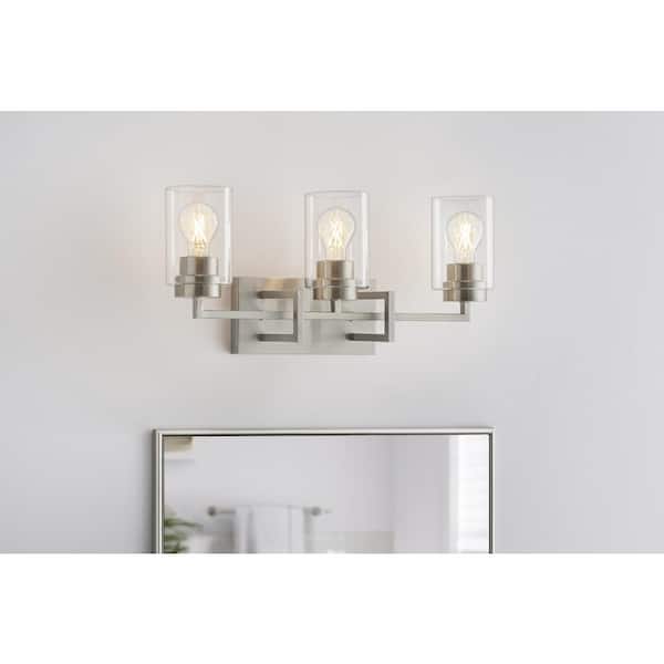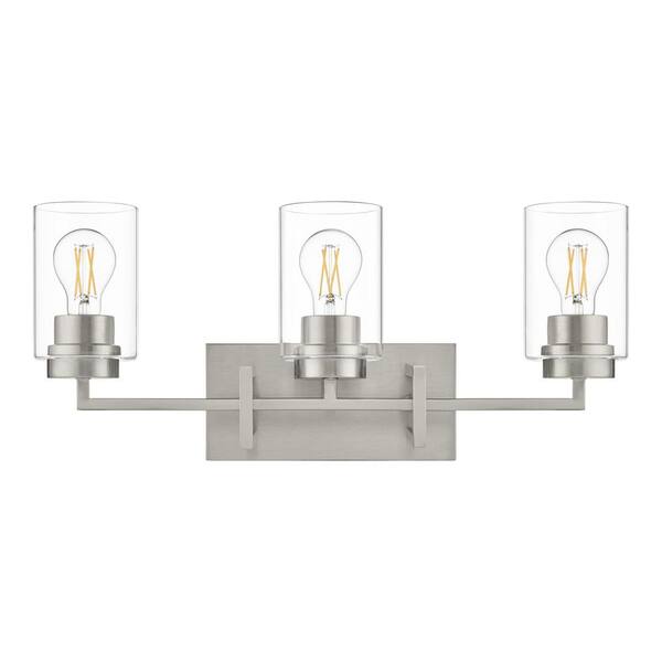Westerling 22.5 in. 3-Light Brushed Nickel Bathroom Vanity Light Fixture with Clear Glass Shades