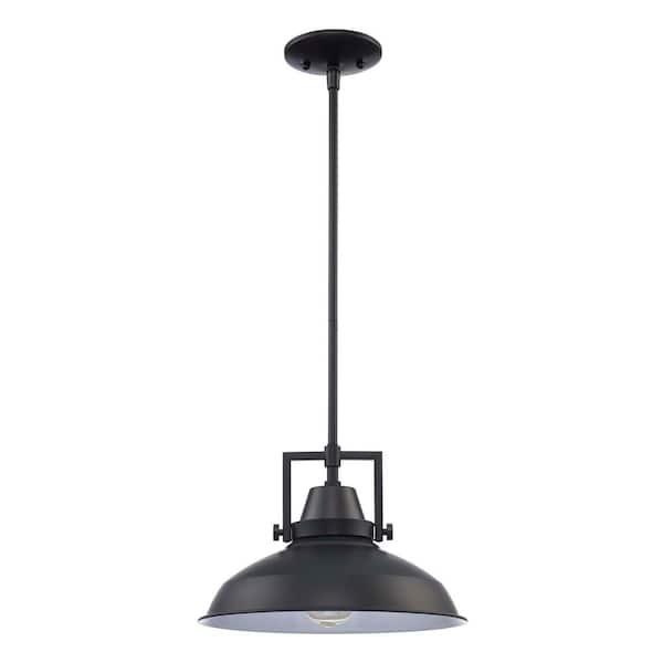 Wilhelm 12 in. 1-Light Black Industrial Farmhouse Pendant Light Fixture with Metal Shade